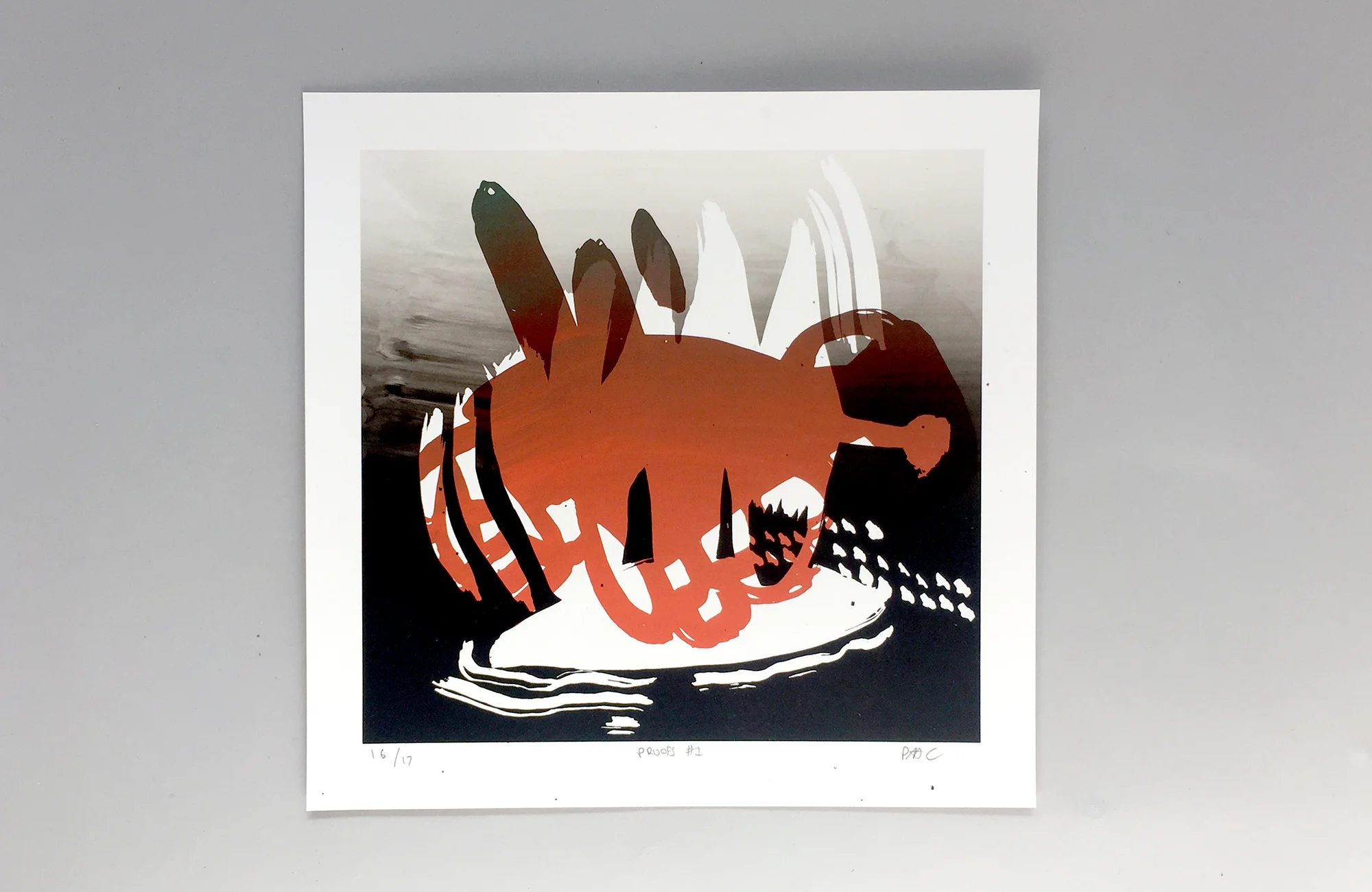 A proof is a one-off sample that a printer will make to get a rough idea of how the ink is going to work on the paper for a edition of multiples. Its usually one of the first prints off of the press while the ink is still wet so that the printer can make any necessary adjustments to color or registration. These experiments often have more character than the editions they are used for.